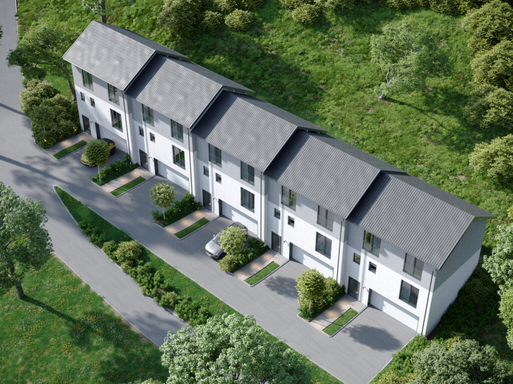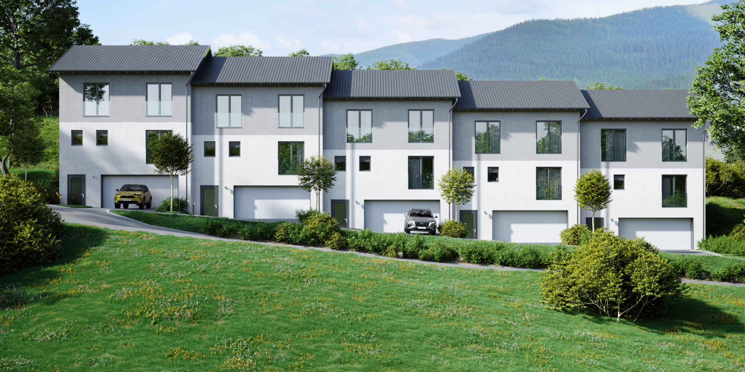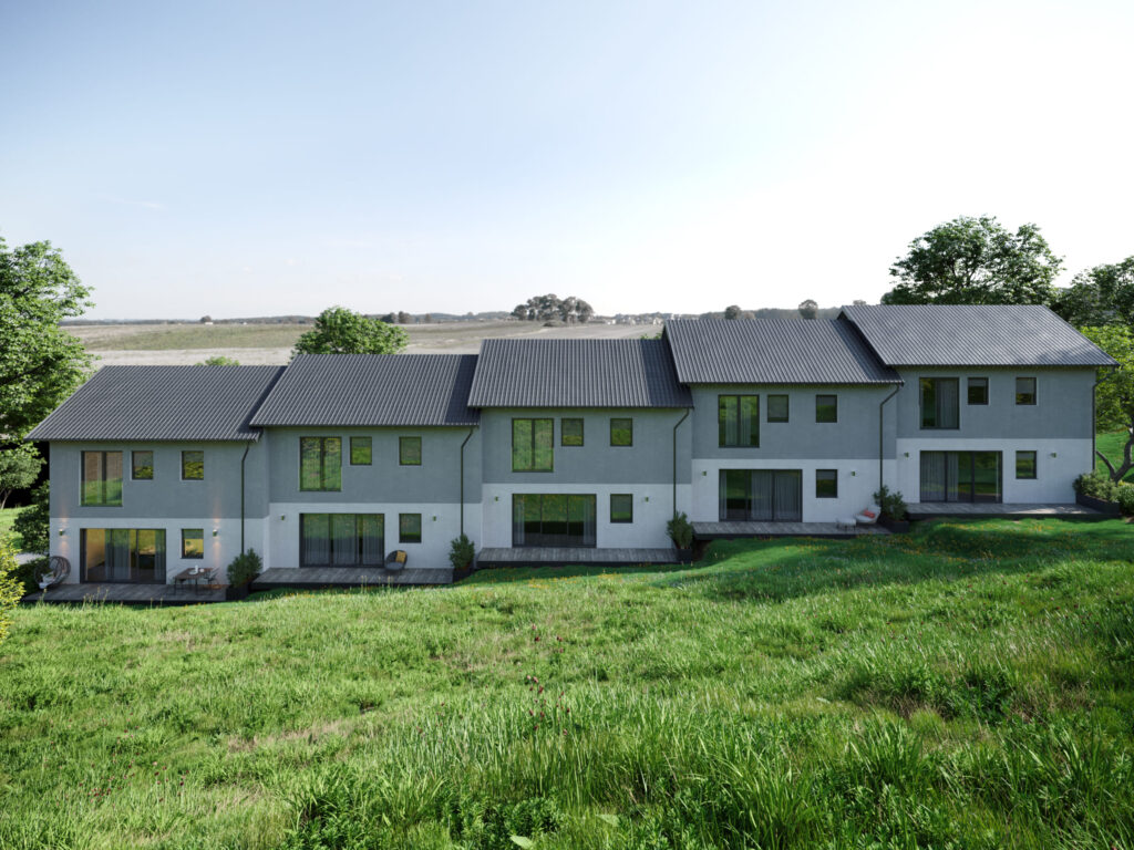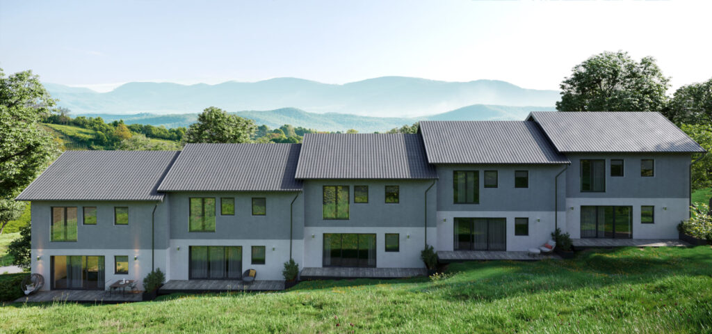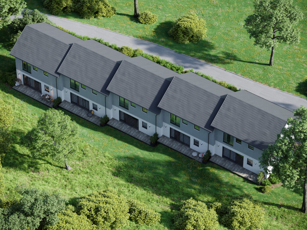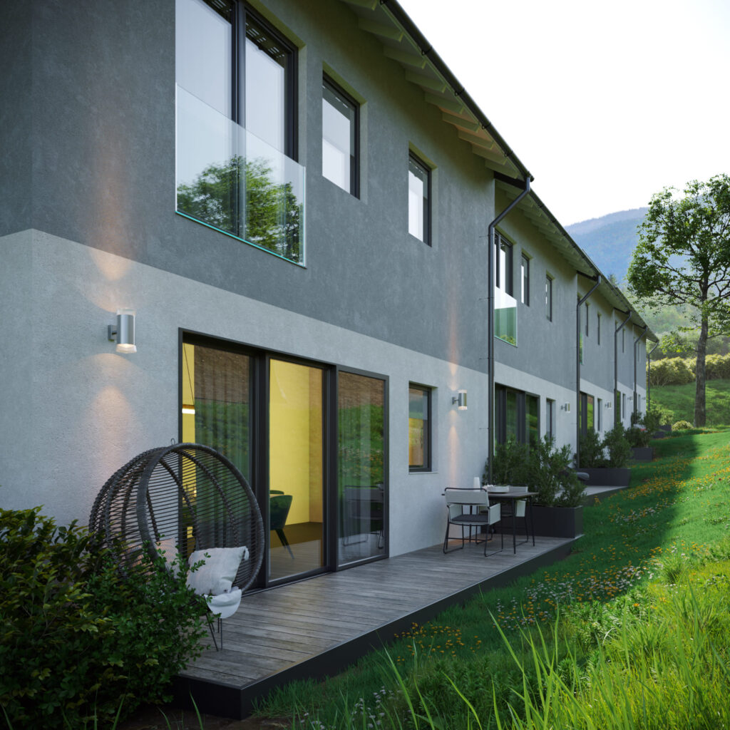 Introducing a new residential complex in Slovenia, set in a beautiful natural environment with a monolithic-frame structure that seamlessly blends modern living with nature’s tranquility. The complex consists of five homes, covering a total area of 2,983 m² and a construction volume of 8,949 m³.