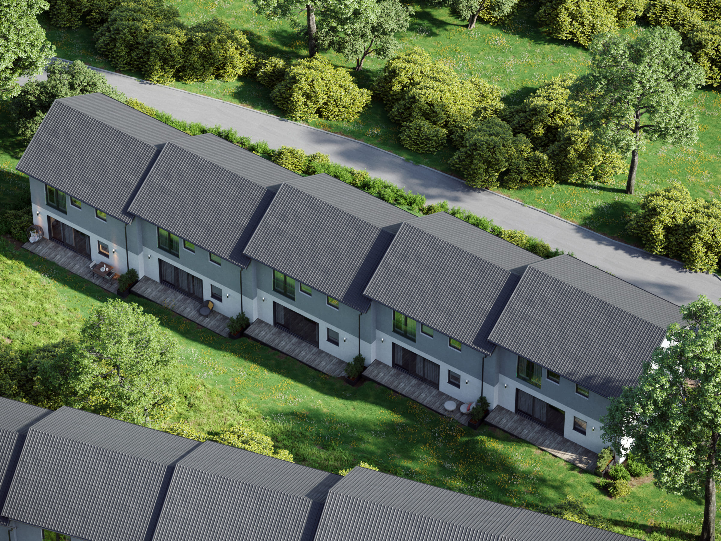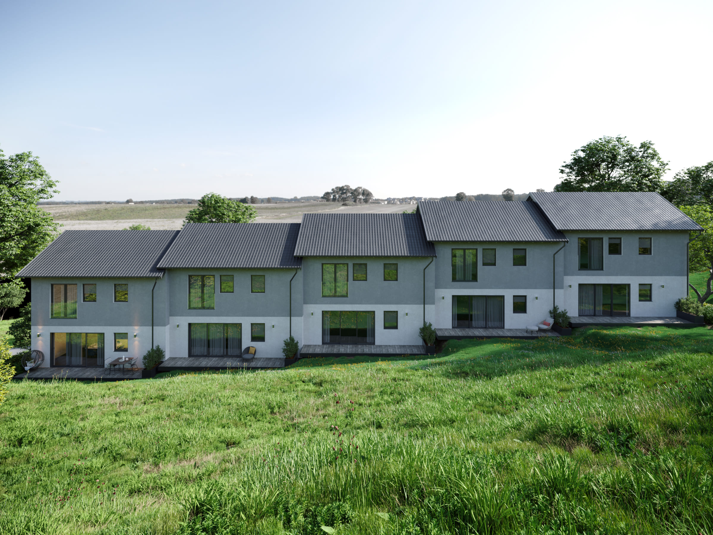 The complex features five residential units, each designed for contemporary, comfortable living. With spacious plots and a carefully planned layout, it guarantees both privacy and a cozy atmosphere — perfect for those who appreciate modern amenities in a natural setting.